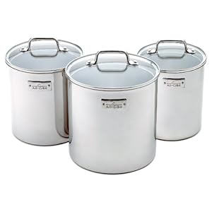 The majority of customers who purchased the All-Clad 3-piece canister set were super happy with the way these canisters perform. One user said there was absolutely no comparison and that an entire 5lb bag of sugar fit in the smallest canister. Customers love the way the canister set looks and say that it looks great no matter what kind of décor exists in the kitchen. Users also say that the canisters are super easy to keep clean by simply wiping them down.
