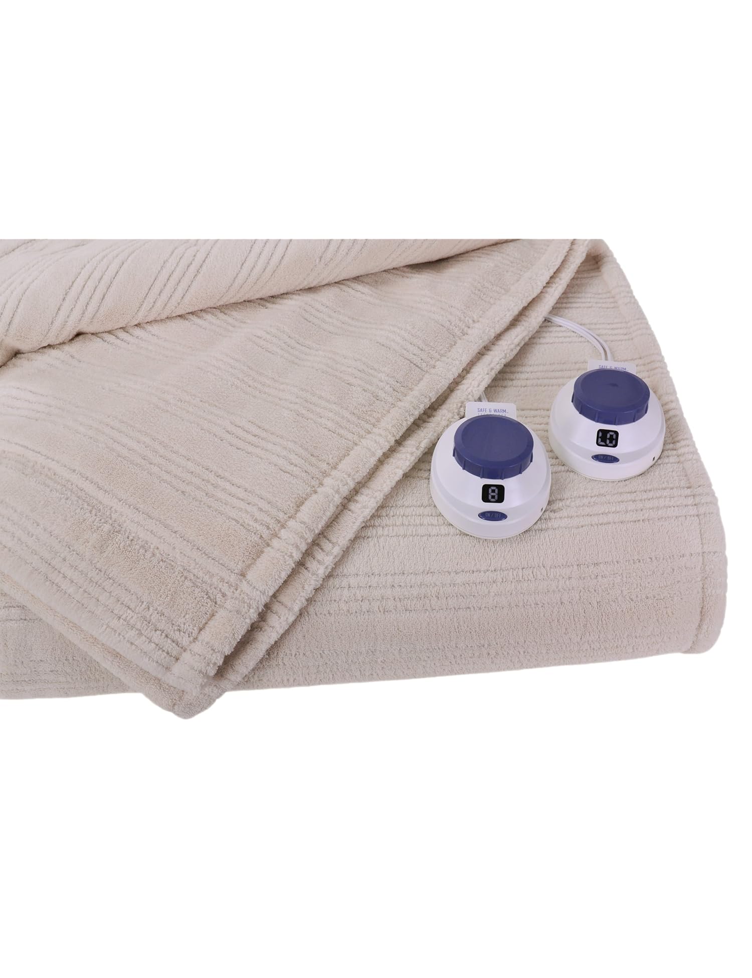 The SoftHeat Plush Triple Rib Electric Heated Warming Blanket offers luxurious warmth and comfort in a decorative triple-ribbed exterior. The low-voltage technology allows individuals to enjoy safe, comfortable warmth with plenty of safety included. In addition to that, tiny wires are distributed throughout the blanket to ensure even and total warmth with no cold spots. It features an automatic pre-heat option as well as an auto shut off after 10 hours to ensure safety and energy conservation.